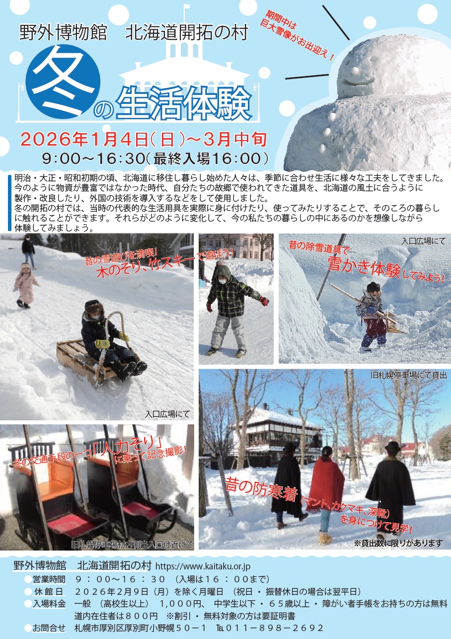 開拓当時の人々の冬の暮らしの一つ、冬遊びを体験してみませんか。
