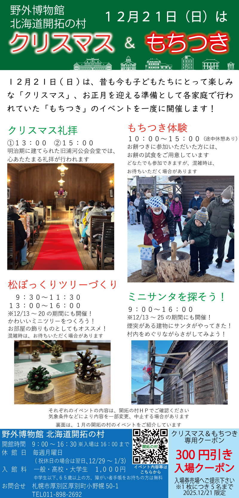 - 昔も今も、子どもたちにとって楽しみな「クリスマス」、そして、昔はお正月を迎える準備として各家庭で行われていた「もちつき」のイベントを、12月21日(日)に開催します。