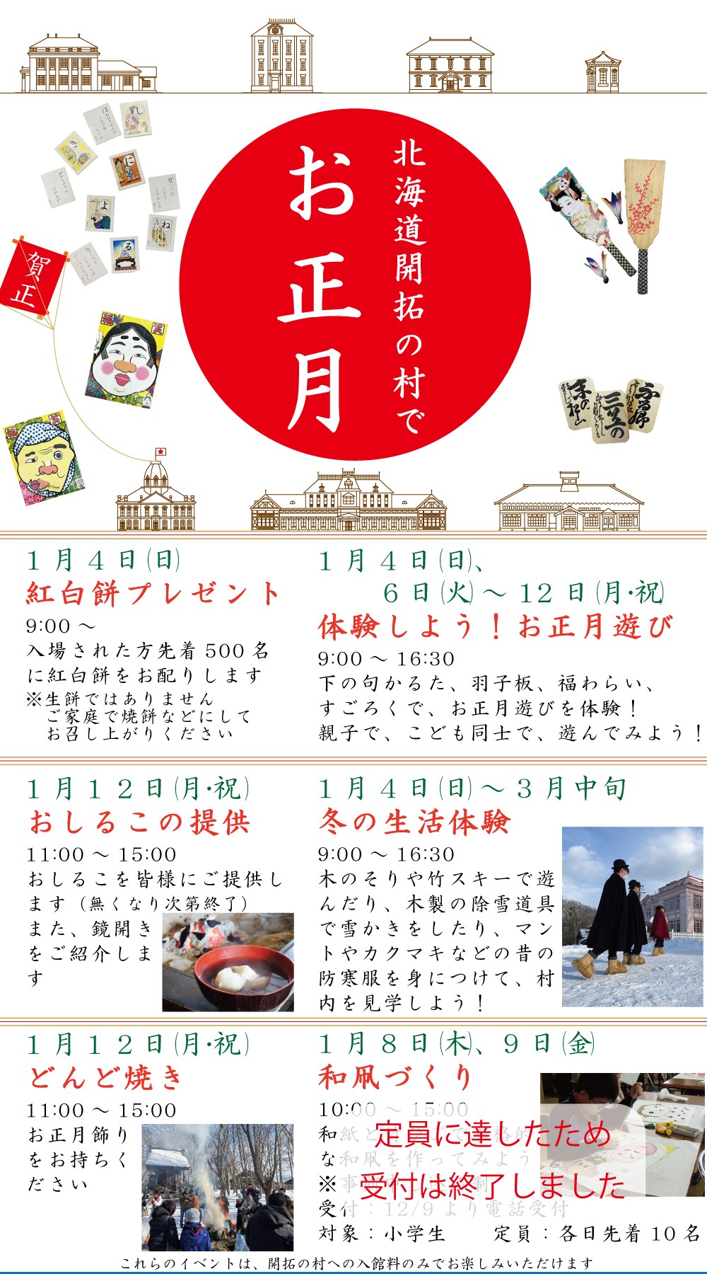 - そして1月4日(日)からは、お正月に関連したイベントを開催します。北海道開拓の村でお正月を楽しみませんか?