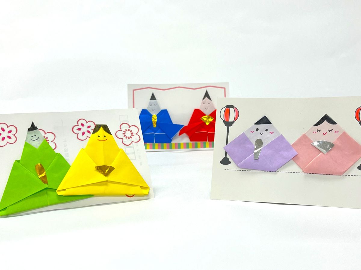 - 毎月プログラムを変えて開催している伝統遊具づくり。2月は、ひなまつりにちなんだ「折りびな」を作ることができます。