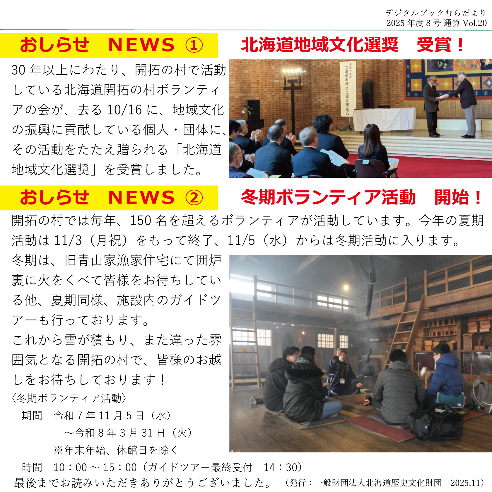 デジタルブック むらだより2025年度8号(Vol.20)発行