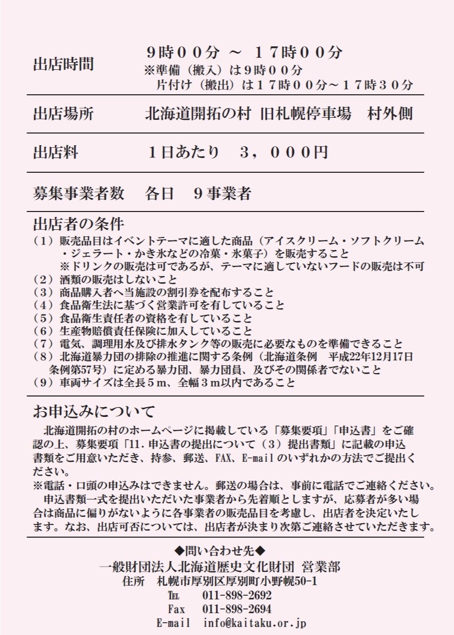 - ※募集期間内であっても、出店者が決まり次第、募集を締め切りいたします。