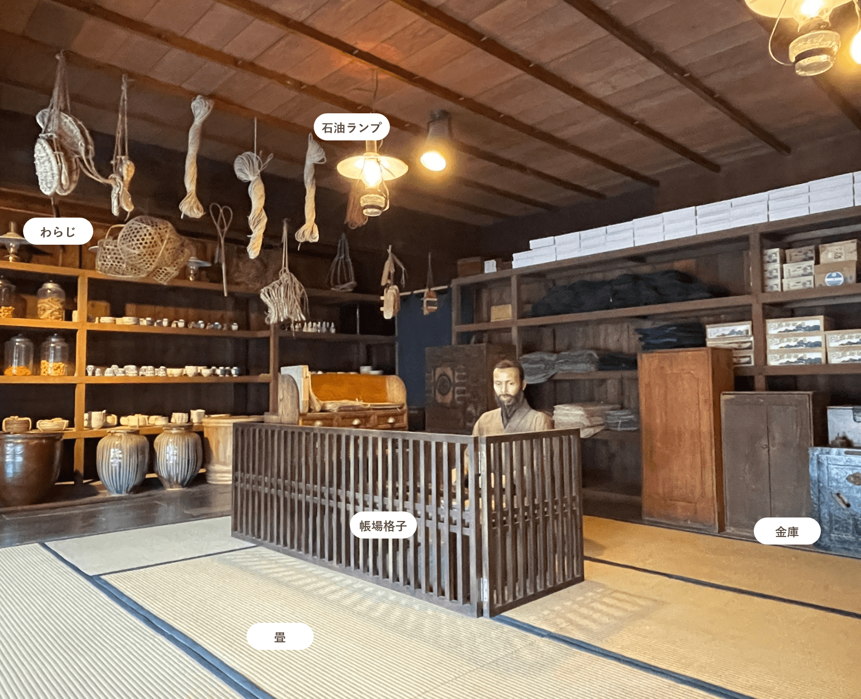 - 商店などでお金や商品のやり取りを管理する帳場を囲うように立て、帳場と客を仕切る三つ折りまたは二つ折りの背の低い衝立格子(ついたてごうし)のことをいいます。